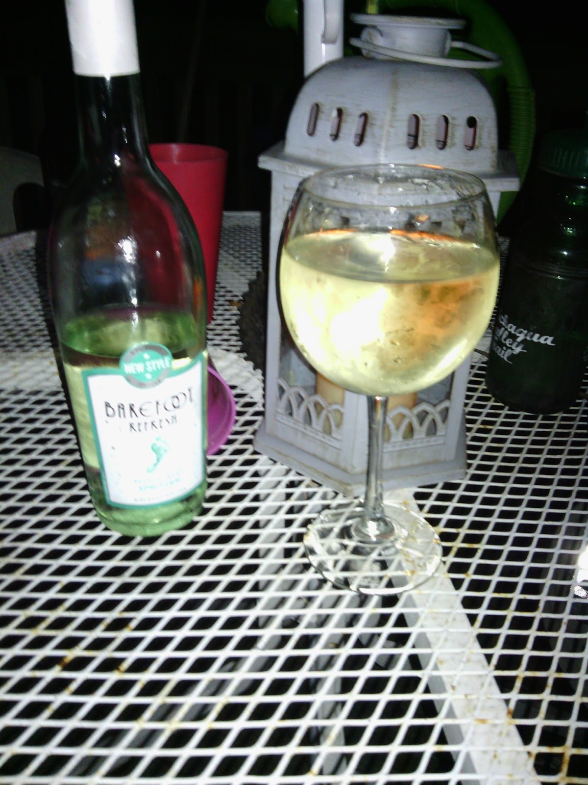As far as Moscatos go it was crap. Sweet yet some underlying foul flat aftertaste. Cheap California wine. HRM Rex-Goliath Winery. Named after a 47 lb cock. Giant rooster. My first sip had me thinking it was Australian. It clocked in at 9.5% alcohol. Mary did not complain. we finished the bottle.